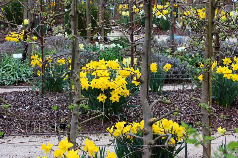 Traditionell fand nach der Reiserausgabe am Reiserkeller ein Veredlungskurs am Obstlehrgarten statt. Eine opulente Narzissenblüte mit vielen Tausenden von gelben Narzissenglocken umrahmte die Veranstaltung. Geschäftsführer Thomas Neder konnte hierzu auch Gäste aus dem Kreisverband Kronach begrüßen. Demonstriert wurden neben der Augenveredlung mit Hilfe der chip buddings Methode auch Varianten der Kopulation, Methoden des Pfropfens hinter die Rinde, das Geißfußpfropfen, das Anplatten und Anschäften.