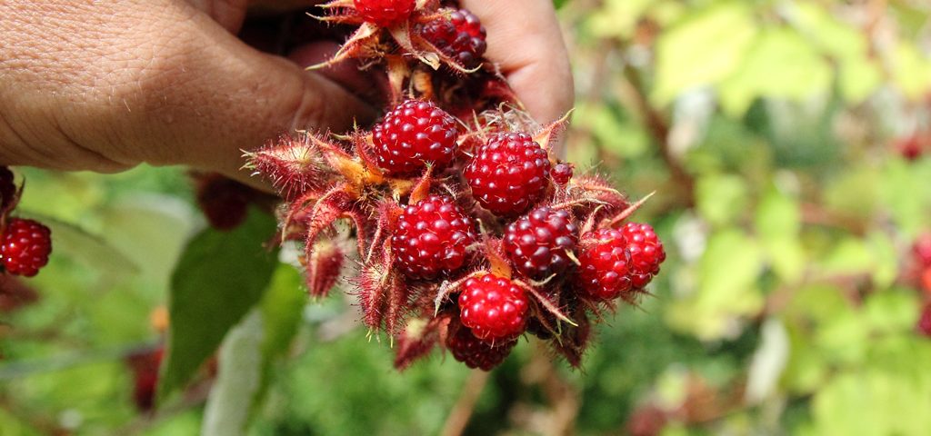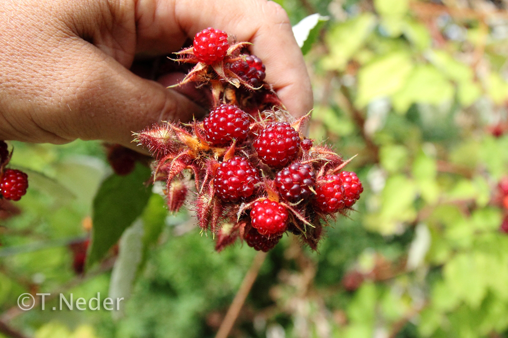 Die Japanische Weinbeere ist eine interessante Alternative zur Brombeere oder Tayberry. Dank ihrer filigranen Stacheln besitzt sie auch in Verbindung mit Reif und Schnee eine interessante Winterwirkung und sorgt für Abwechslung im bekannten Beerenobstsortiment. Am besten wird sie am Drahtspalier, am Zaun, einer Mauer oder einem Rankgerüst kultiviert.