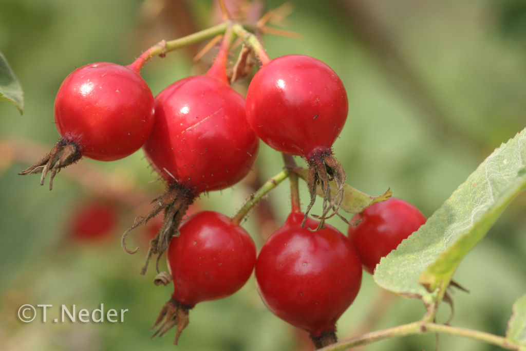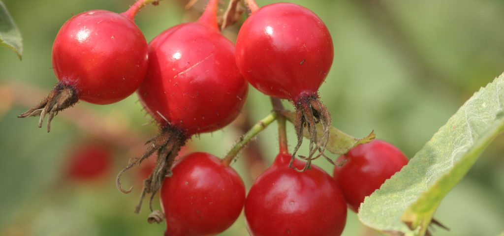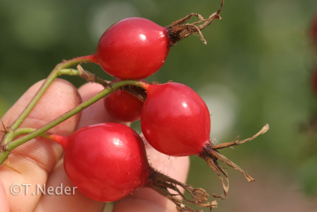 Großfruchtige Wildrosen sind wegen ihrer einfachen Blüten für Insekten besonders interessant. Auch ihre Früchte geizen nicht mit optischen und kulinarischen Reizen.