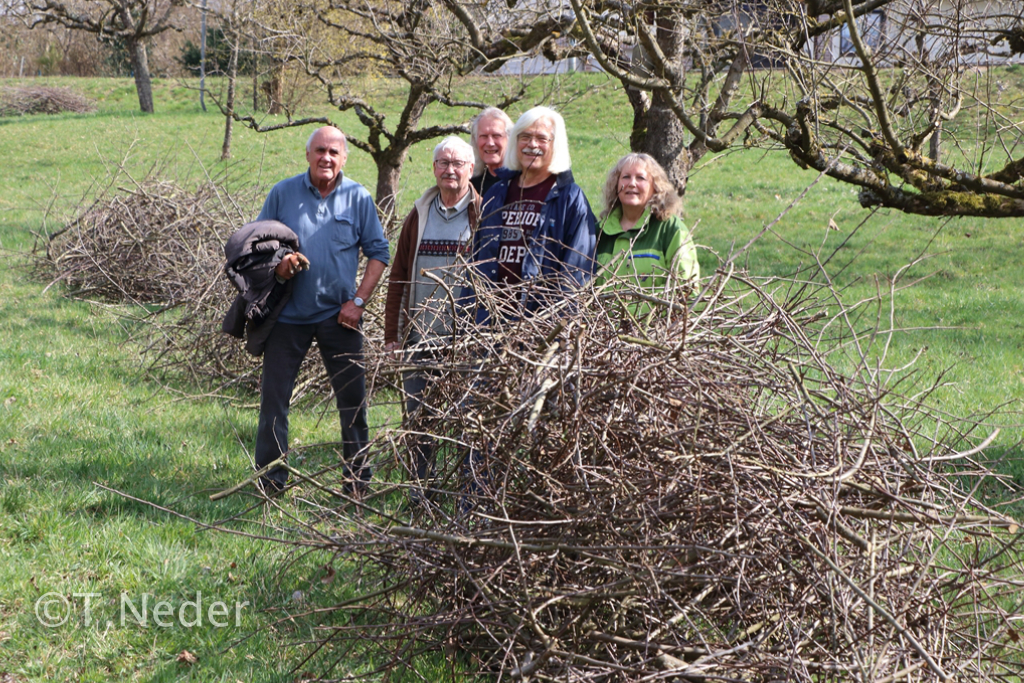 Die mit ca. 80 Obsthochstämmen bestandene Anlage leistet u.a. als Lieferant für Edelreiser im Zuge der alljährlichen Edelreiseraktion und für Veredlungskurse auf Kreis-, Bezirks- und Landesebene wertvolle Dienste. Im Zuge einer gemeinsamen Pflegeaktion wurde nach den erfolgten Schnittmaßnahmen das Schnittmaterial gesammelt und die Anlage für das neue Jahr vorbereitet.